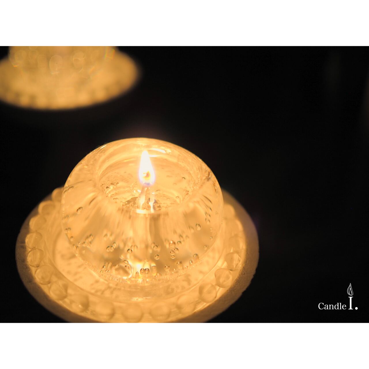 外側を透明度の高いパラフィン、中心部分をソイ(大豆)ワックスでお作りすることにより、見た目の透明感と、灯した時の心地よさ(ススのでにくさ)を大切にしています。