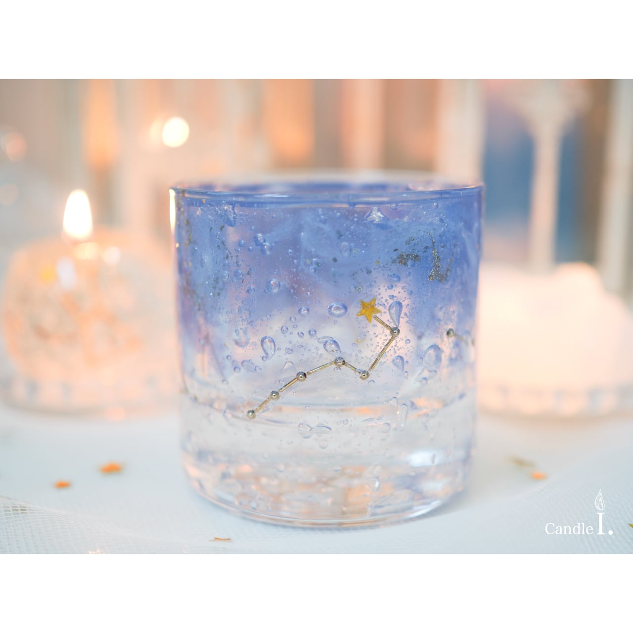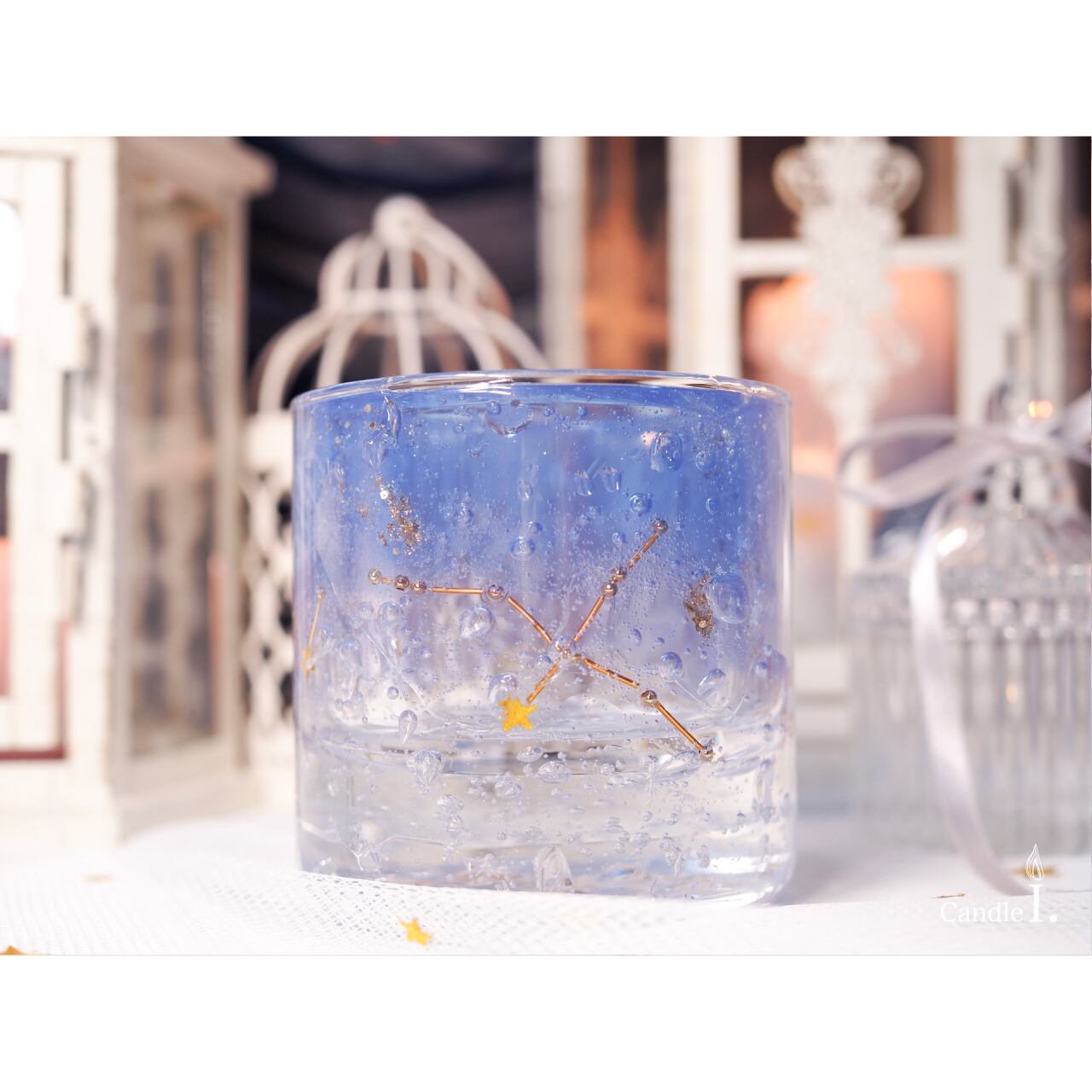 "なくなってしまうのがもったいなくて灯せない"というお声をいただき、星座キャンドルシリーズのランタンタイプを制作しました☆