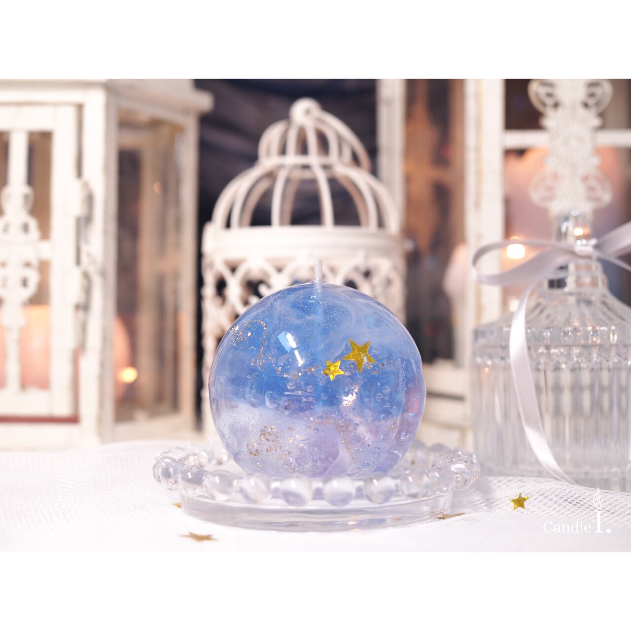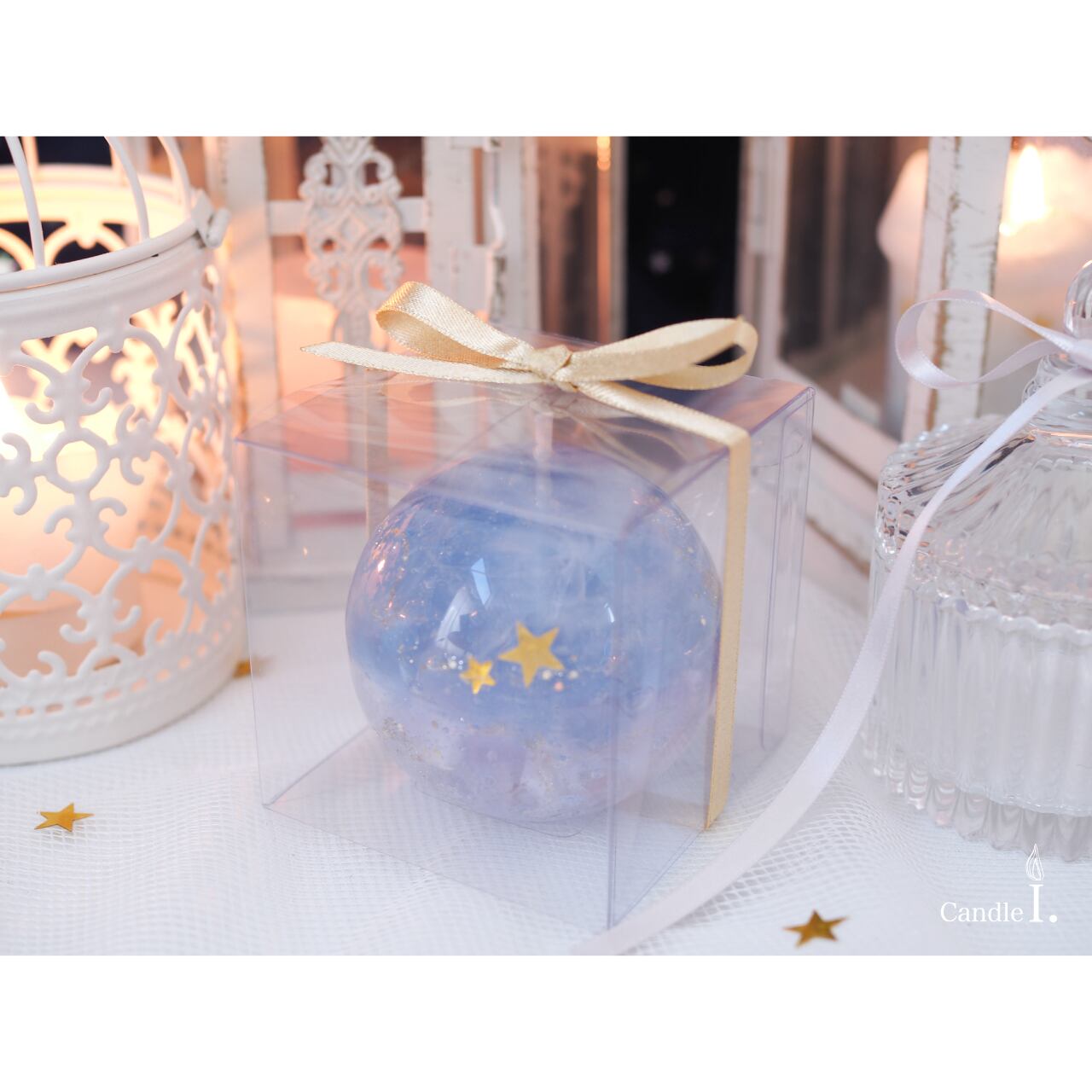 もうひとつのキャンドルは、夜空をイメージしたまんまる球体のキャンドルです。