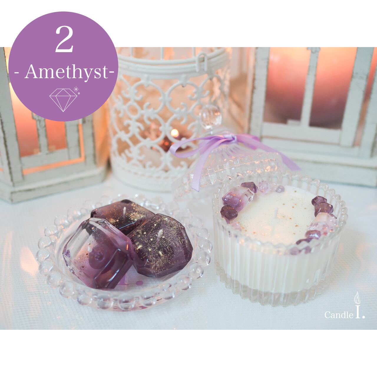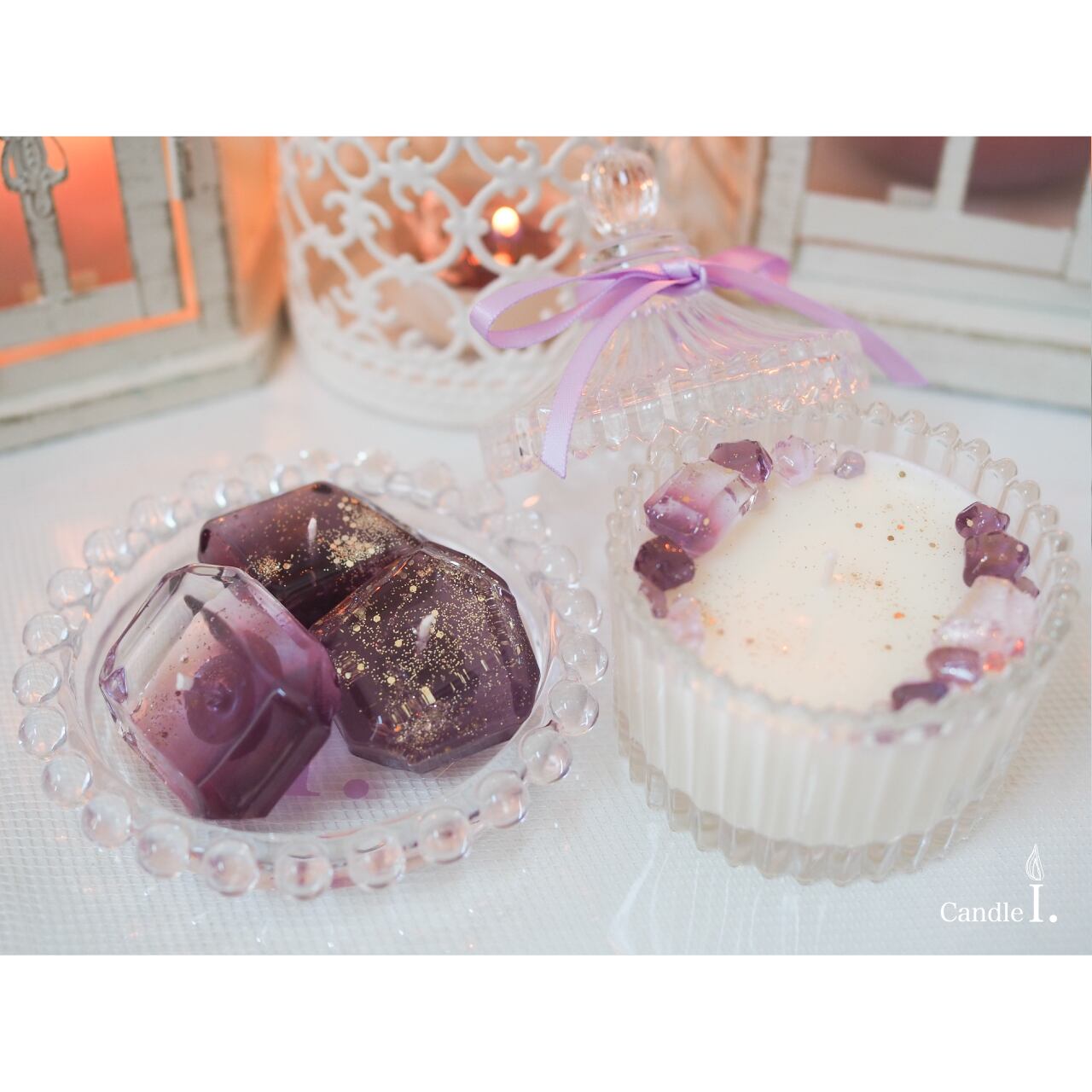 アメジストの和名は"紫水晶"パープルの高貴な色合いがとても美しく、様々な色味の紫をキャンドルに閉じ込めました。