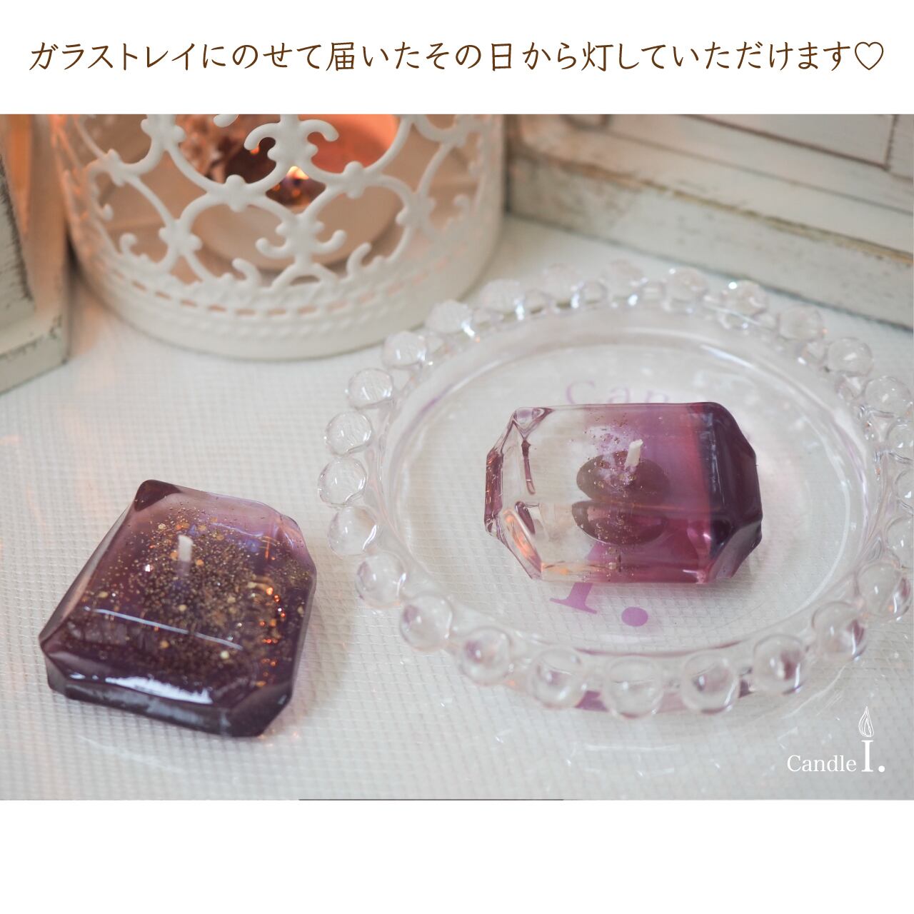 セットにしたトレイの上にのせてワンタイムキャンドルとしてお楽しみください。