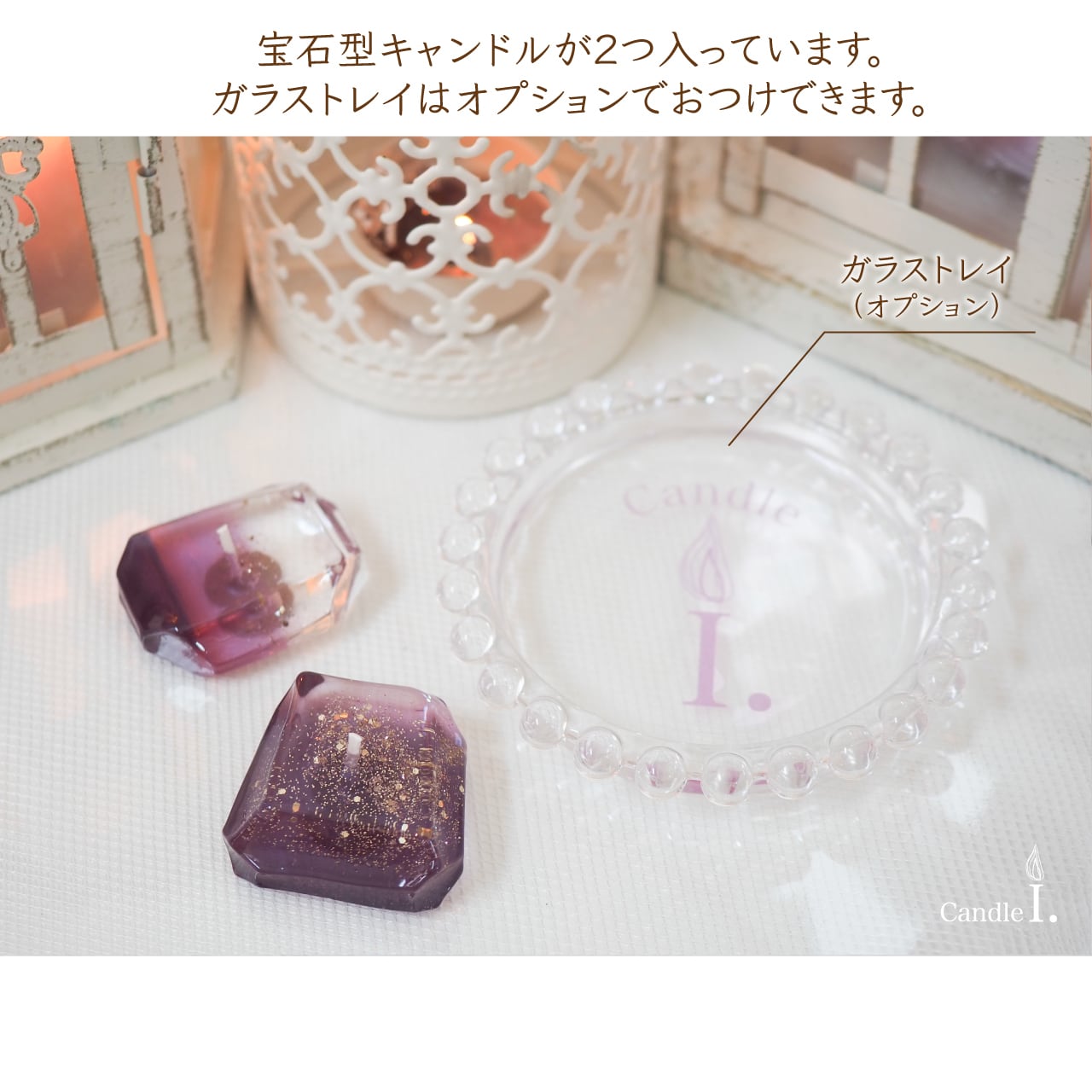 オプションにてトレイ付きにしていただくと、ミニキャンドルをのせて灯すのにピッタリです。"小皿を用意するのが手間"という方は、オプションでご選択ください♡