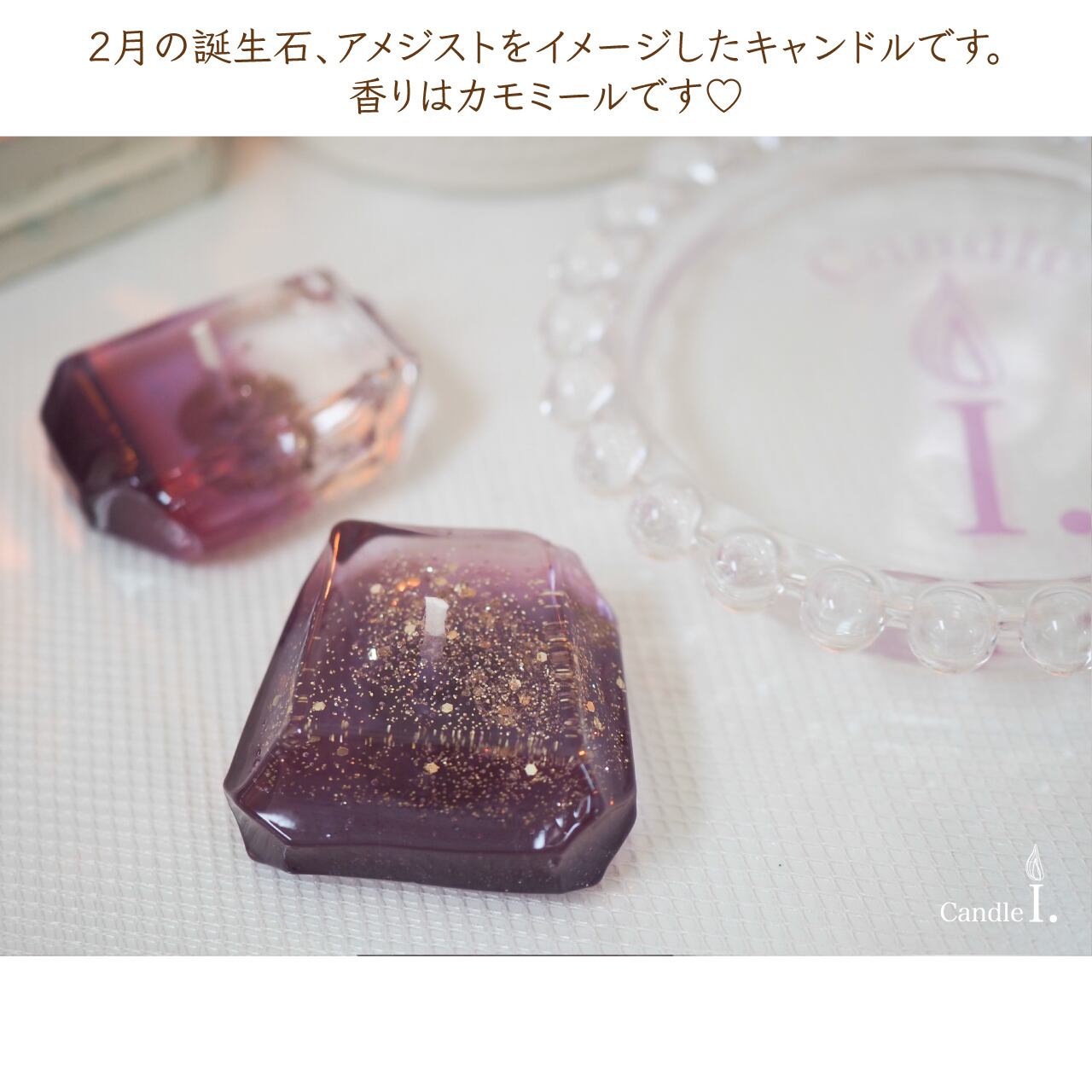 2月の誕生石、アメジストをイメージしたキャンドルのミニセットです。
