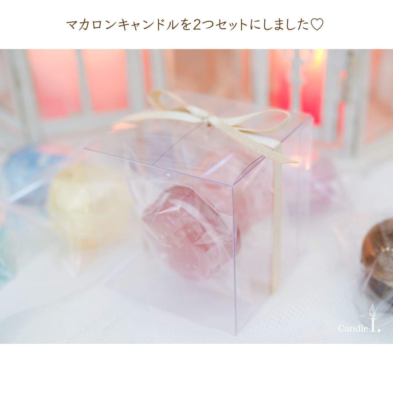 ころんとした可愛らしいマカロンをイメージした、ミニキャンドルのセットです。