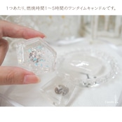 透明ぷにぷになジェルワックスを使用して、宝石型にカットしたミニサイズのキャンドルを3つセットにしています。小さいですが燃焼時間は1〜5時間程度と長持ちします。