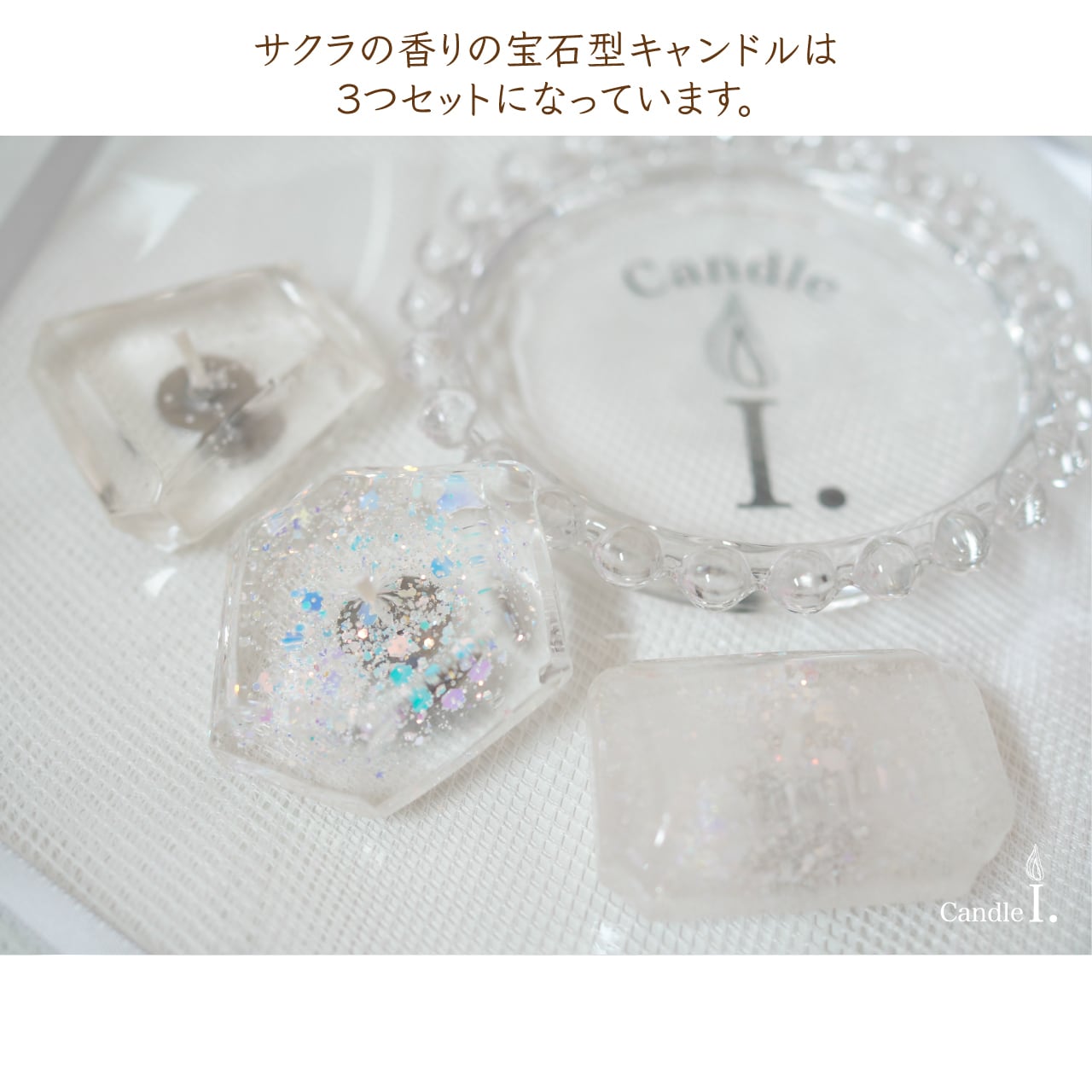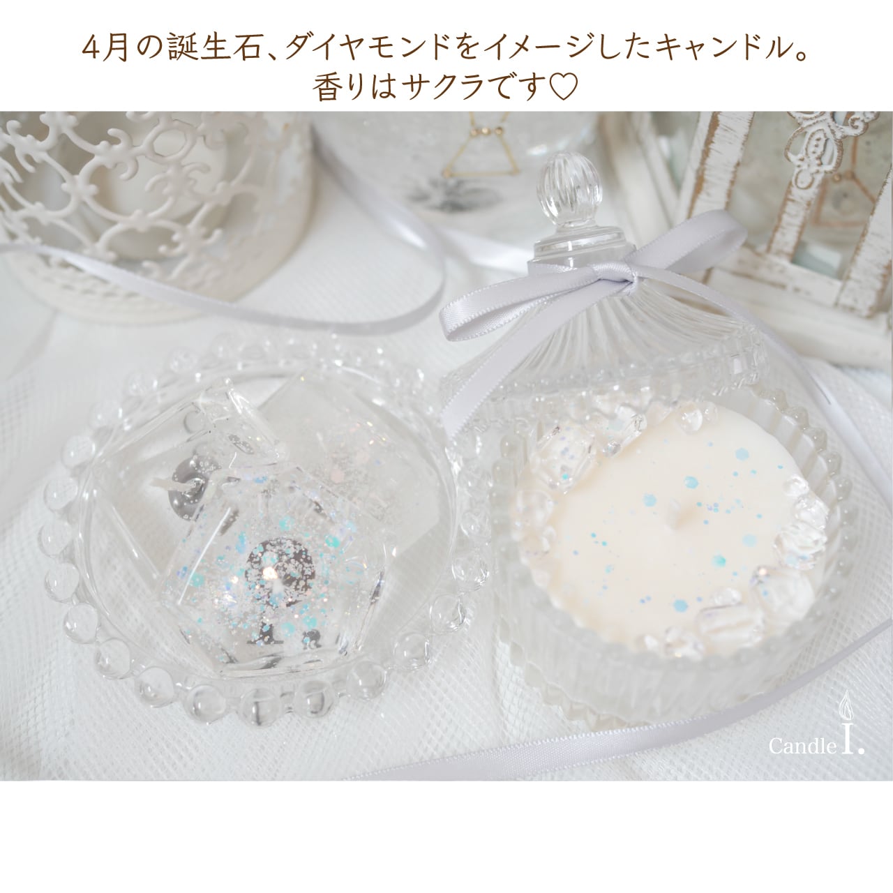 4月の誕生石、ダイヤモンドをイメージしたキャンドルセットです。