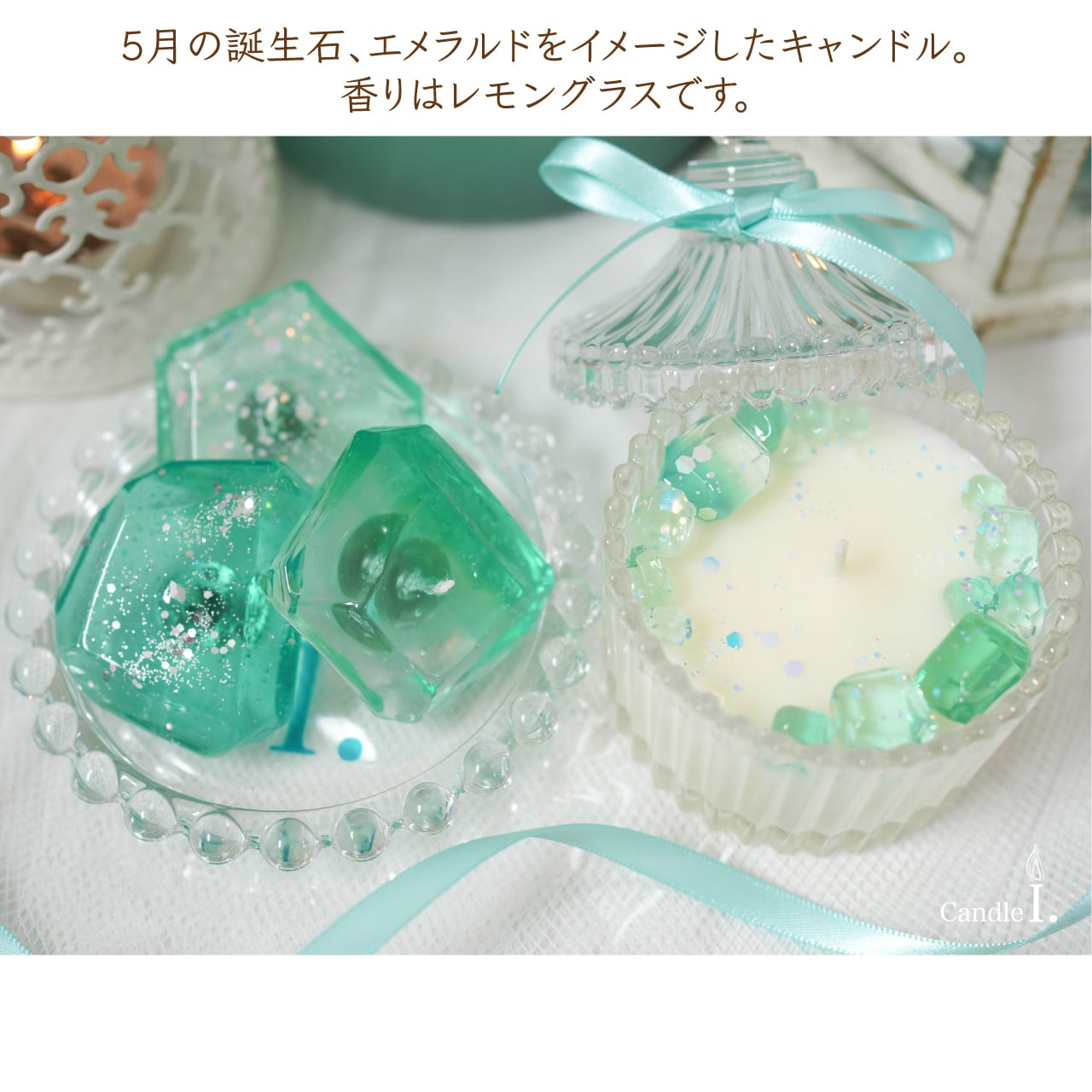 5月の誕生石、エメラルドをイメージしたキャンドルセットです。