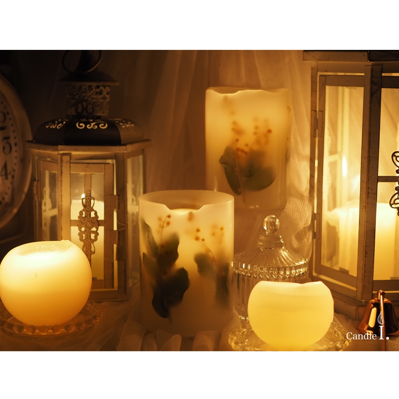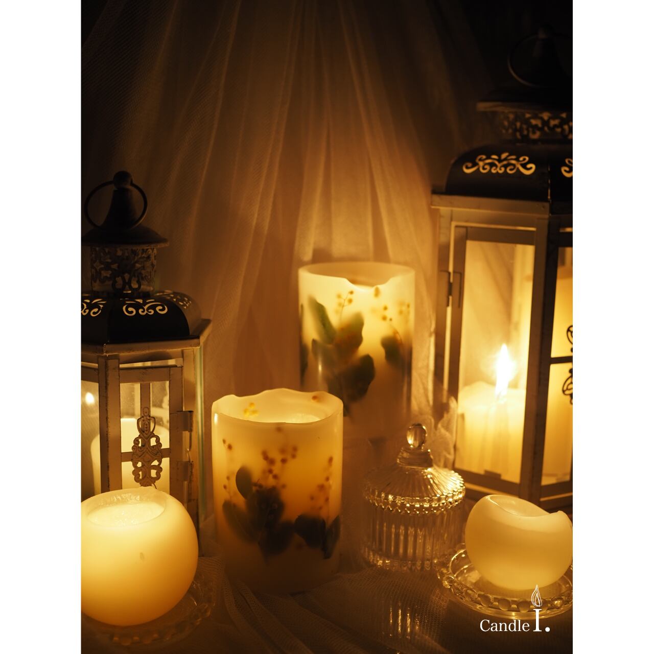 ・中心部分のみが溶けていくように制作しておりますが、灯し方によっては、とけたキャンドルから草花が露出し、炎に引火する場合がございます。内側に露出してしまった草花はハサミなどでカットしてあげてから灯していただけますようお願いいたします。